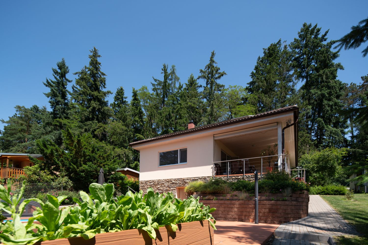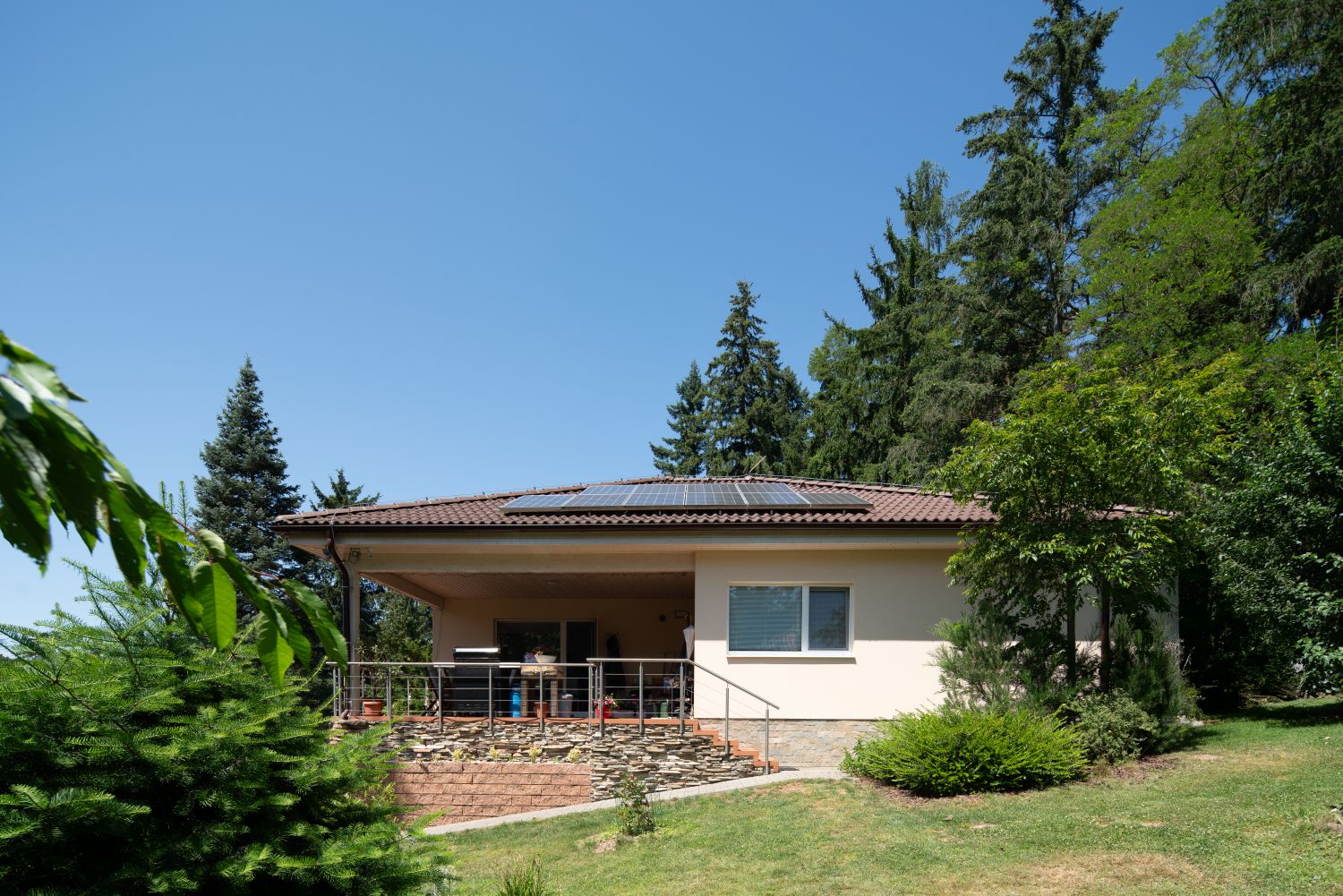 Nepoužívaný: Ačkoliv k hlavnímu vchodu vedou schůdky lemované zelení zahrady, Luboš i jeho návštěvy do domu chodí téměř výhradně z druhé strany přes terasu. Foto: Martin Zeman