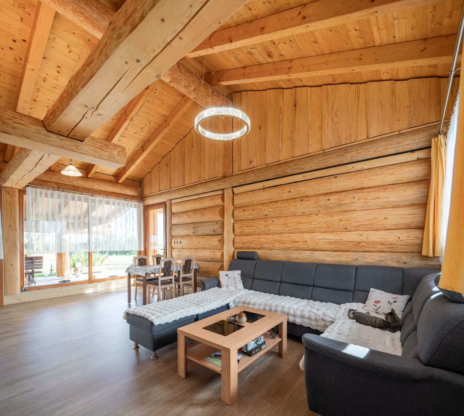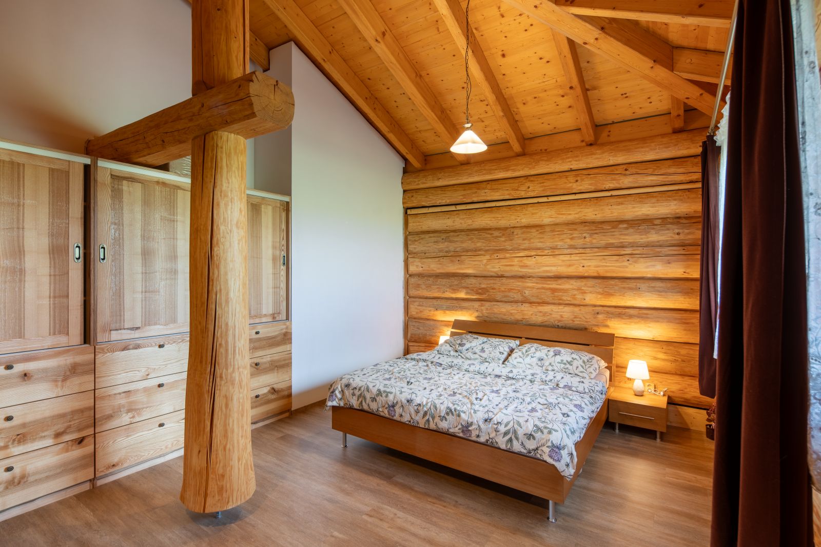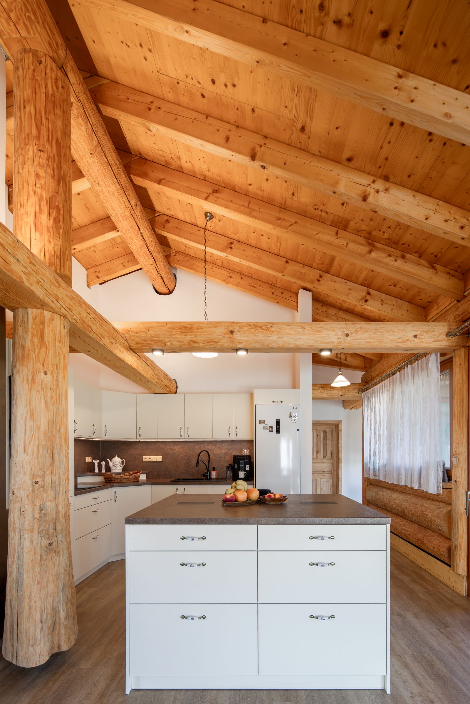 Spolupráce s panem Tomášem a paní Danielou byla od počátku příjemná, jelikož věděli, co chtějí, a rovněž si nechali v zásadních věcech poradit. Pro nás, coby výrobce, byla tato konstrukce tak trochu výzvou, hlavně v jednoúrovňovém spojení podélných a příčných klád v detailech stropů a průvlaků. Zde bylo zapotřebí vyrobit z kulatin rybinové spoje, jež fungují staticky skvěle a současně umožňují skryté a pevné konstrukční spojení.