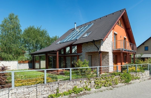 Přesněji řečeno vlastními silami. Základovou desku, rozvody elektřiny, hrubé podlahy, pokládku topných rohoží, příčky, nadkrokevní izolace a pokládku střešní krytiny a venkovní dlažby jsme si dělali sami, odborníkům jsme svěřili položení dřevěných podlah a dlažby v přízemí. Sami jsme si dům také natírali zevně i zevnitř.