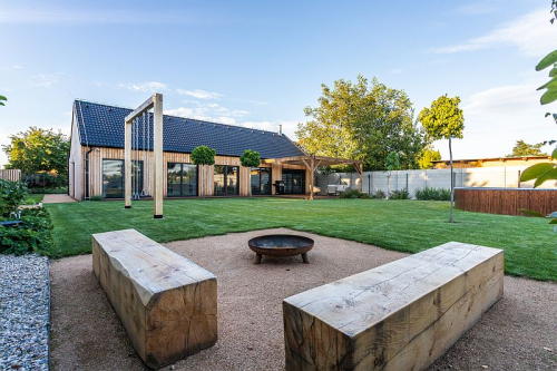 Návrh je charakteristický svými kontrasty a dialogy mezi zahradou a domem, interiérem a exteriérem, výraznou hmotou a dokonalým splynutím. Díky černé fasádě chata maximálně zapadá do okolní přírody, laťování z opáleného dřeva se proměňuje pod úhlem dopadajícího světla a jeho členitost evokuje kůru okolních stromů.