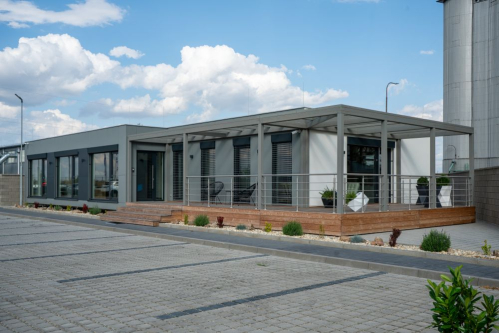 - Konstrukční systém: Novatop - CLT panely Solid 84 mm (obvodové stěny), Element 240 mm (střecha) a Acoustic, biodesky v interiéru, zateplení foukanou izolací a dřevovláknitými deskami
