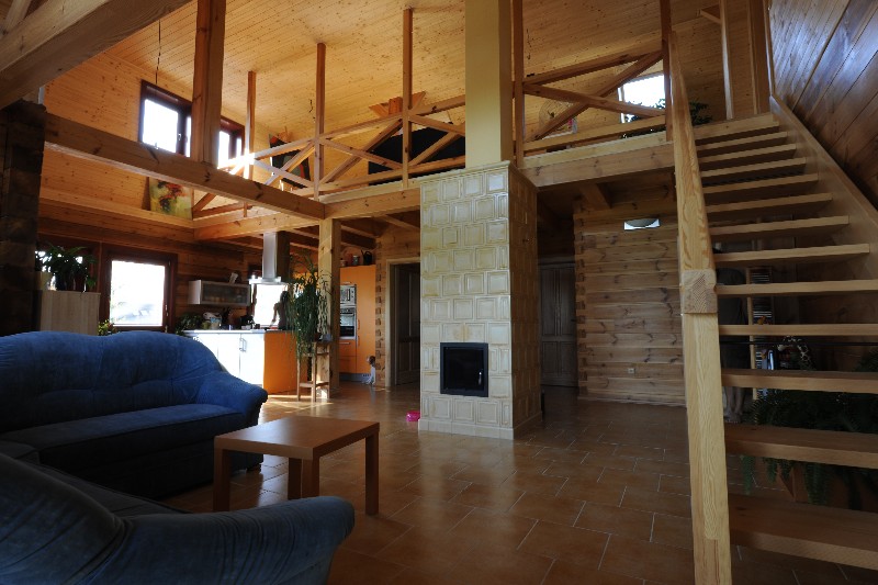 V podkroví je pouze prostorná půda využívaná jako skladovací prostor a otevřená pracovna. Volný průhled z obývacího pokoje až pod střechu dodává celému prostoru vzdušnost a velkorysost prostoru.
