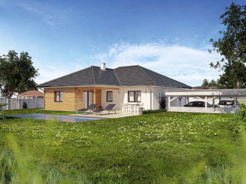Lucky neboli šťastný – tak se jmenuje nový bungalov s přímým vstupem na terasu a střechou na přání. Dům nabízí 111 m2 obytné plochy bez schodů s terasou a výhledem do zahrady z kuchyně, obývacího pokoje i dvou ložnic. Půdorys ve tvaru písmene L přirozeně odděluje obytné části domu od privátní zóny ložnice a dvou pokojů. Jídelní kout s obývacím pokojem tvoří otevřený celek s přímým vstupem na velkou terasu.