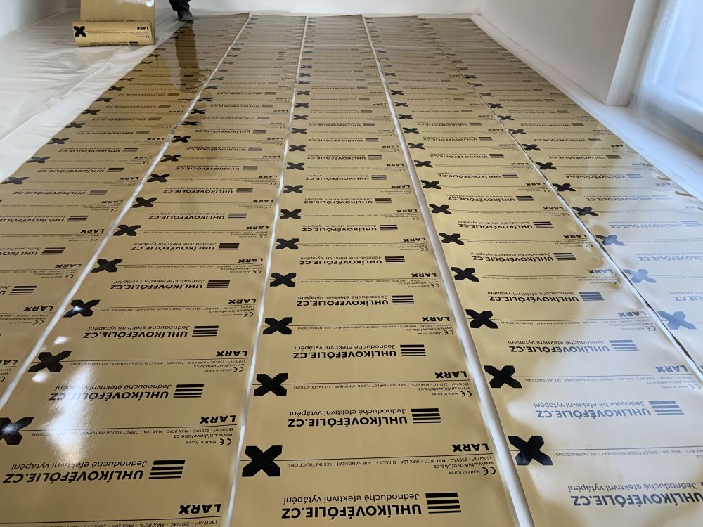 - Rozvržení: neinstalujte přes dilatační spáry; neumisťujte pod stálý nábytek bez ventilace či spotřebiče.